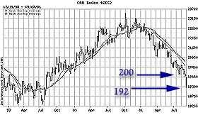 We're very bullish on yields, specifically the long term ones. Our forecast for U.S. treasury yields is the 6 to 6.5 percent ranges by yearend. And so far, many of the bears would probably agree with that outlook. But will we go straight to Dow 7000 now, or will the market bounce around meaninglessly for the next two weeks, first, or will the bulls come back fighting? There does not appear to be any real consensus here, and a straight down move would surprise us from this level, and this day, because most of the sentiment indicators have become overly bullish in implication. What needs to happen for a resumption of the bear market trend, in our view, is that bullish sentiment needs to return. Whether that manifests in a violent swing back toward the 10000 mark or in a sideways trading range is difficult to tell. It is hard to come up with any variable which can support a rally other than one of the many laws of physics, as temporary as they may be. But there is also the very real possibility that panic sets in as well, which it hasn't yet, and the market does sell off immediately. It is not a cheap market, and regulators have done such a good job at keeping investors hanging on that any break in confidence is easily likely to bring about a panic. Perhaps all that we can say with any confidence, at this time, is that the Dow 10000 mark will become an insurmountable valuation for years to come, and any rally will be a temporary one. Yet, if it is going to come, now is as good a time as any, according to our read of recent market behavior. That said if it does, look out for the bears that missed the mid month selling opportunity due to any gentlemen's agreements. If it doesn't, look out for the same bears as they become increasingly anxious to liquefy... now if only Strauss Einhorn could hedge like that, no one could take her arguments apart! Let me put it this way - as investors, we're out of the market and not coming back until it is much lower and everybody else wants out. As traders we are flat and awaiting the right signal (behavior) to get short. As analysts, we're telling you that the long term direction is down, and the short term direction is still up in the air - pending further developments, market related or otherwise. Parting Ways... But our analysis of the commodities sectors seems to be lacking. We expected a bottom to develop in the CRB index this summer (at about 200) which would accompany, follow, or precipitate a stock market and dollar decline. Steven Saville noted in an email to me in August that he felt this bounce would not occur until October or January, primarily because there is typically a six-month lag between the bottom in bond yields and a reversal in commodities. He appears to be correct so far, but I would caution that the terrorist attack had a more direct impact on the CRB then it did on equity markets. The commodity indexes are in the midst of an intermediate decline as is the stock market, but they are also arguably in the middle of a primary bull market, in our view, unlike the stock market. While our forecast for a reversal in the CRB appears to have been early, it stands, and we stand behind our view that the energy, gold, as well as the grains, will lead it.