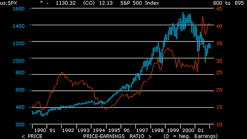 turns into too much Money The only way to observe that in a free market is by changes in prices. And our job as analysts is to monitor all prices, not just the ones the government says we can. Surely asset price inflation is different, in terms of immediate consequences, because it affects the purchasing power of an increasingly abundant currency, so long as they (asset prices) can rise at a fast enough clip to attract foreign capital. Even without a rising foreign exchange value, asset price expansions can increase purchasing power. This is good if the expansion in value is real, but it is not good if it is superficial, and otherwise induced by inflation. But, to look at growth in the money stock combined with growth in asset values, and not make a connection is simply inane. It's even more absurd to accept the solution offered by the Fed that the rise in stock prices is due to their measure of productivity, and therefore real. That's like reading a report from Philip Morris detailing how smoking is not addictive. Hello, money makes the world go 'round, and it takes money to make stock prices go up. Productivity will not do it alone. More and more money is needed to make stock indexes move higher and higher, pulling up with them more and more stock issues. It's true that productivity engenders greater profitability. But if that is the case today, why are profits falling at such a fast rate? I mean so fast that even while stock indexes declined by 12% last year in the US, valuations measured by the PE ratio on the S&P 500 continued to rise by almost 50%, to 40 times earnings.